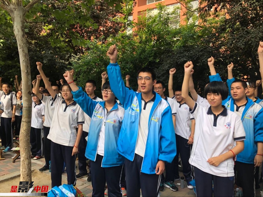 考生考前呐喊,为自己打气。新华网 张鹏摄