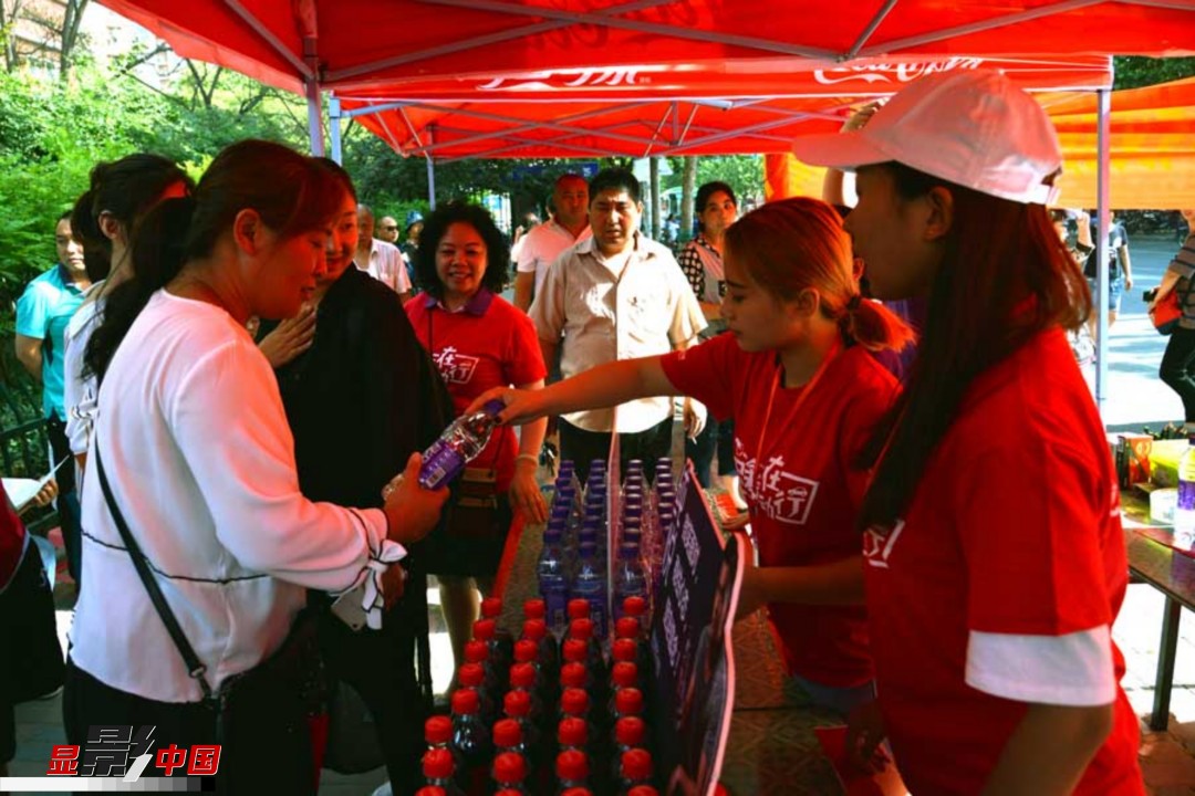 志愿者向考生家长发放物品。新华网 王立鹏摄