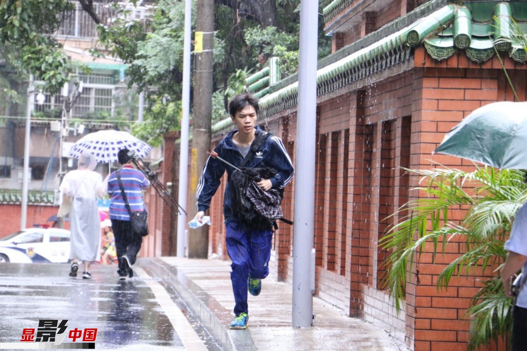 高考……我来了,风雨无阻!9点正式开考,广州培正中学考点前,一名考生奔赴考场。新华网广东频道 黄璐璐 摄