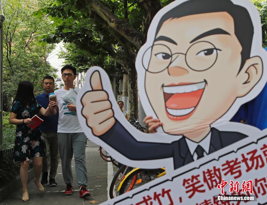 家长陪伴考生迎接人生最重要的考试。 殷立勤 摄