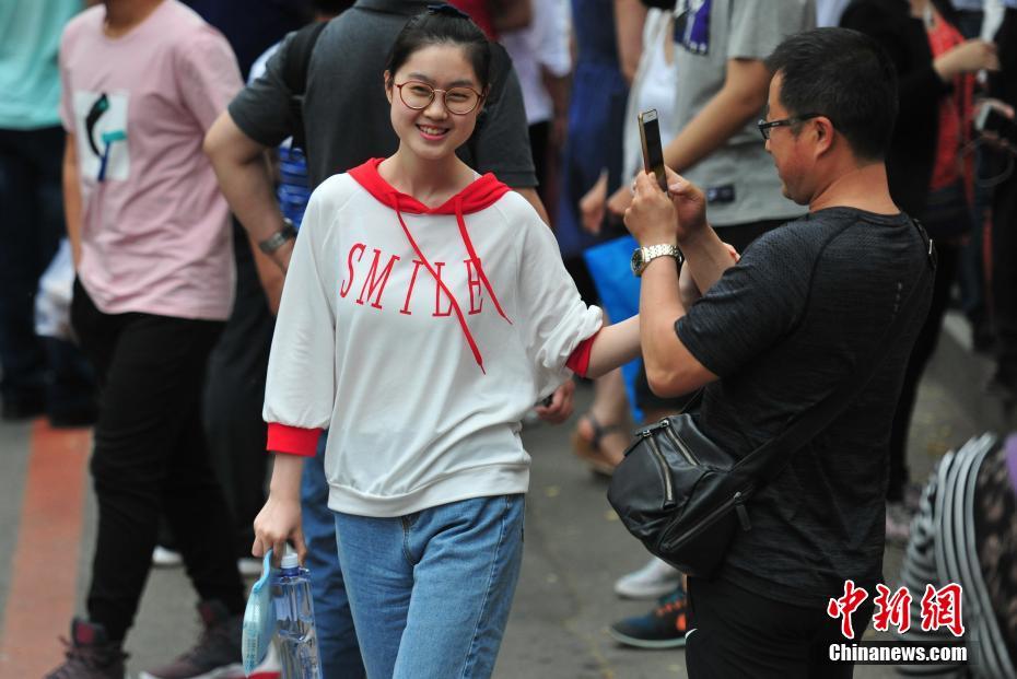 6月7日,沈阳“陪考”大军在考场外与考试大军胜利会师。当日,2018年高考大幕正式拉开。中新社记者 于海洋 摄