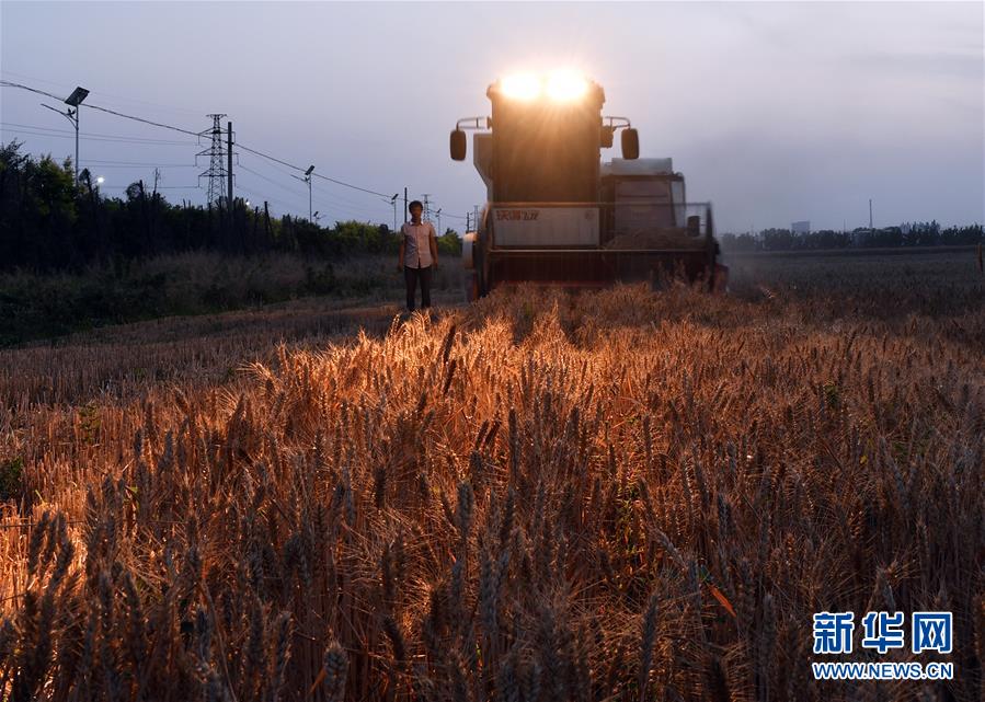 6月6日,在山东省淄博市临淄区,农民王熜之一家在收获小麦。新华社发(崔立来 摄)
