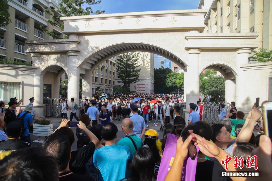 6月8日下午5时,为期两天的2018年全国统一高考在大部分地区落幕。随着考试结束铃声的响起,考生门纷纷走出考场,迫切地寻找自己的亲人,第一时间与他们分享高考结束的喜悦。据统计,今年全国高考报名考生共975万人,福建20万人参加高考。 李南轩 摄