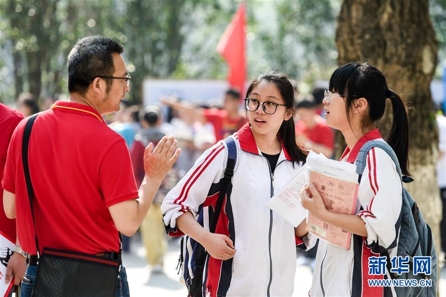 6月7日,在江苏省南京市人民中学考点,考生与送考老师进行考前交流。 新华社记者 李博 摄