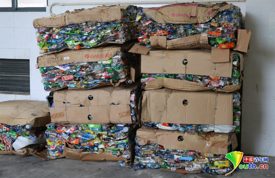 经过压缩后的可回收垃圾。中国青年网记者 杨青山 摄