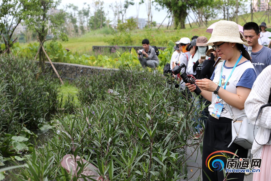 “新时代·幸福美丽新边疆”海南行网络主题采访团参观海口美舍河湿地公园凤翔段,了解海口的水体治理及生态修复成果。南海网记者陈望摄