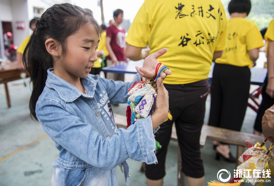 6月10日,“我的礼堂 我的家”端午文化周活动在温岭彭家村拉开序幕,村民们齐聚文化礼堂,包粽子、做香囊、观赏演出,提前度过了一个充满家乡味道的端午节。(浙江在线拍友 朱海伟 摄)