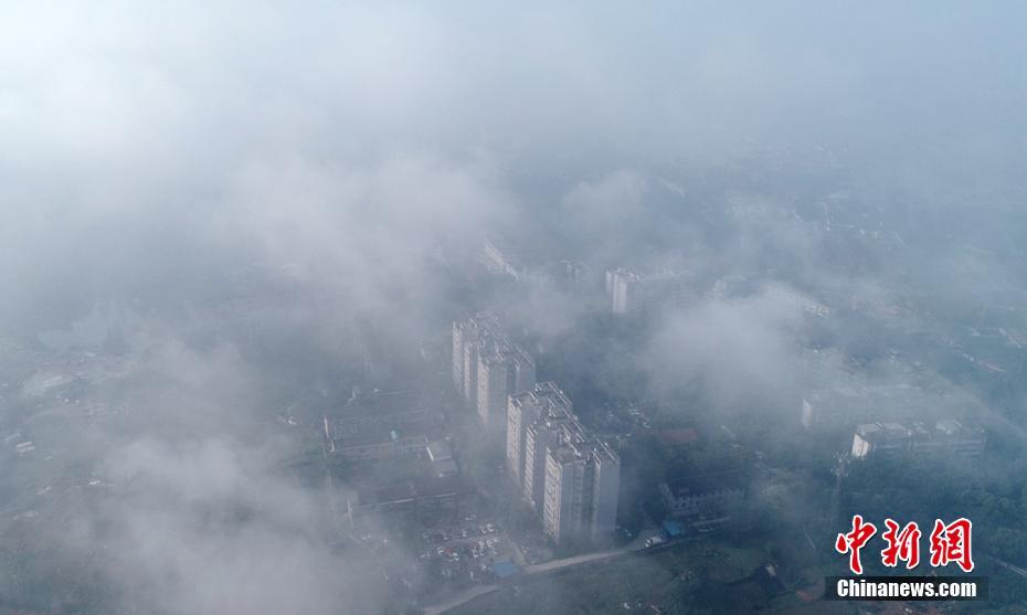 6月12日清晨,成都城区东面出现“平流云”景象,一些楼宇被雾气包围或笼罩,宛如仙境。平流云是当较暖的气团经过一个较冷的下垫面(如冷水湖)时所形成。 刘忠俊 摄