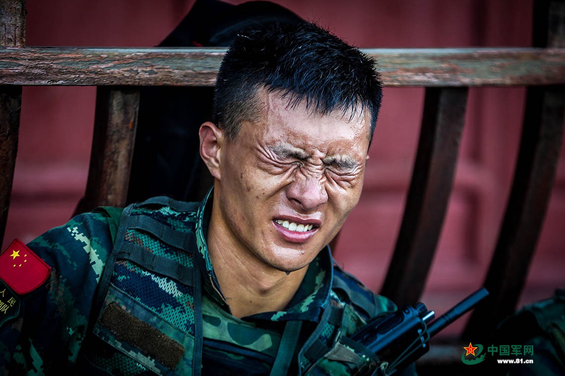 武装奔袭后的特战队员满头大汗。安栋 摄