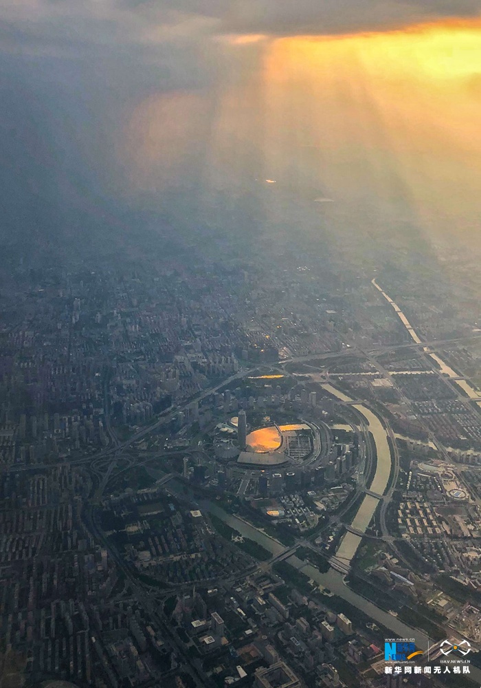 6月13日,绚丽的晚霞映照在河南省多地的天空。宛如一位天资纵横的画家,在天空的幕布上,用最自然的颜料、最巧妙的构思,铺陈一幅美丽的画卷。图为郑州晚霞。新华网 睢媛媛 摄