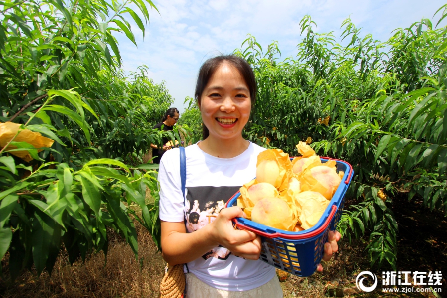 水蜜桃种植是台州市路桥区农民的一个传统农业,在当地政府部门积极引导下,通过开办合作社以及“农旅结合”等不同方式促水蜜桃销售,让水蜜桃经济“甜”一方百姓。(浙江在线拍友 蒋友亲 摄)