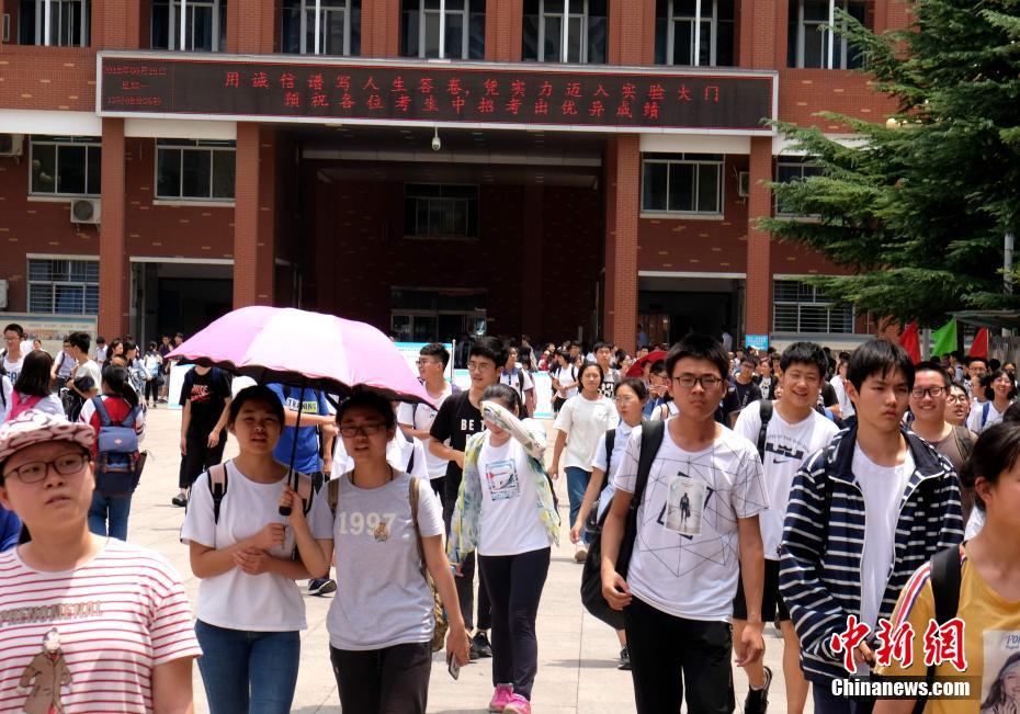 6月25日,河南郑州,中招考试实验中学考点。当日,2018年河南省中招考试拉开大幕,全省共有111.5万学子“赶考”,参加全省统一中招考试。中新社记者 王中举 摄