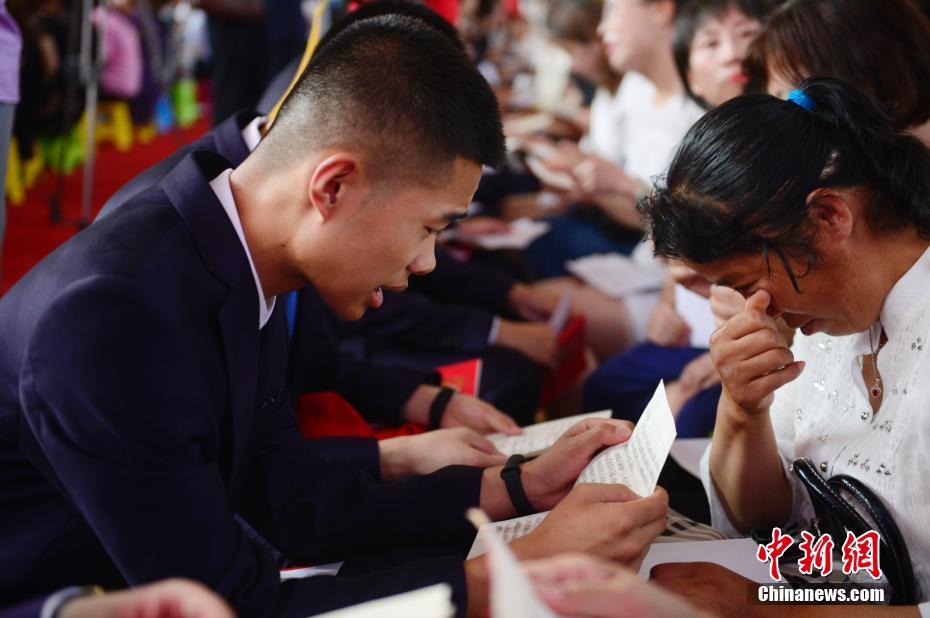 6月30日,学生为家长阅读心里话信件。当日,内蒙古呼和浩特市第一中学举办高二年级成人礼仪式,家长与老师共贺学生成人,鼓励其走出属于自己的人生道路。中新社记者 刘文华 摄