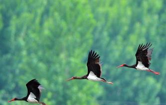 黑鹳现身河北石家庄 为世界濒危珍禽