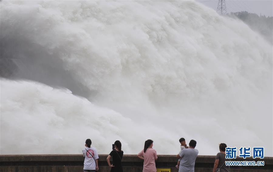 7月3日,游客在黄河小浪底水库参观。黄河防汛抗旱总指挥部发出通知,自当日起,黄河小浪底水库按2300立方米/秒流量控泄。 新华社发(苗秋闹 摄)