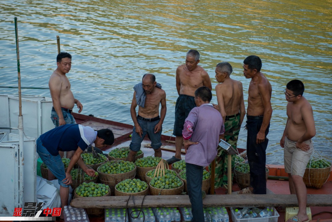 李子放满了箩筐,箩筐放满了船舱。果商和村民们,站在船舷边上,看着刚摘的果子,按着大小谈好价格,上称称重。新华网李相博 摄 文/李相博 王文慧