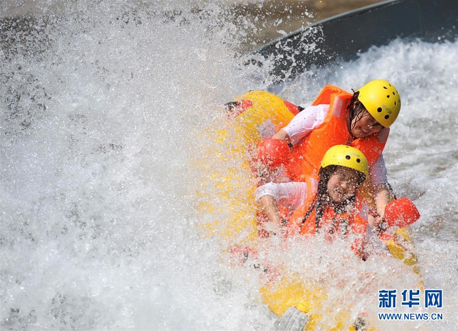 7月4日,游客在燕山深处的河北省承德市兴隆县天桥峪景区漂流。夏日炎炎,各地的亲水休闲消暑项目受到游客青睐。人们与水为伴,乐享清凉。 新华社发(王立群 摄)