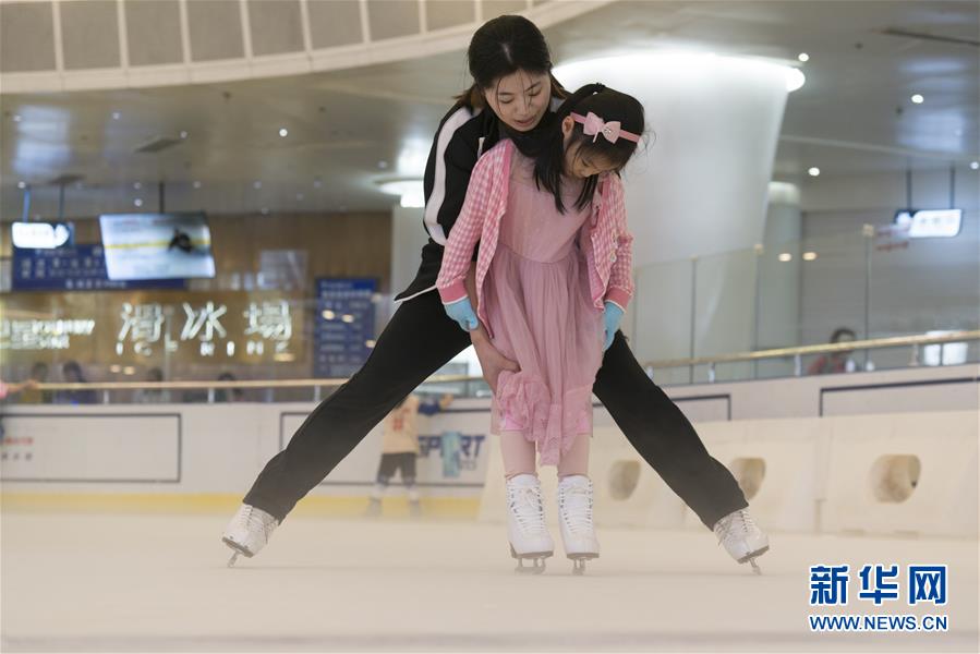 7月5日,在福建省福州市一滑冰场,教练对学员进行一对一辅导。暑假期间,各地孩子们利用假期参加多种形式的课外活动,在实践中学习新技能。