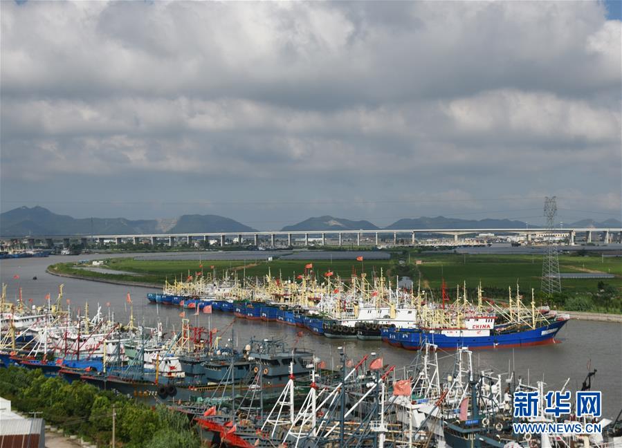 7月8日,渔船停泊在浙江台州市金清大港避风。随着台风“玛莉亚”逼近,浙江台州大批渔船回港避风。据中央气象台预报,今年第8号台风“玛莉亚”将于7月11日前后登陆我国浙闽沿海。新华社发 梁敏慧 摄