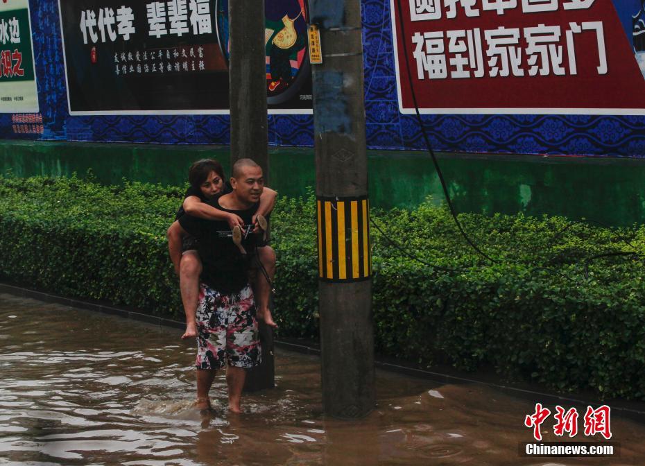 北京市海淀区突降暴雨,民众出行受阻。中新社记者 贾天勇 摄