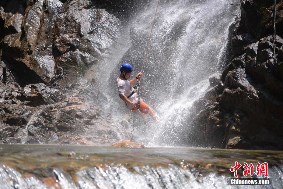 孙思成功在5分钟内完成瀑布速降。 杨华峰 摄