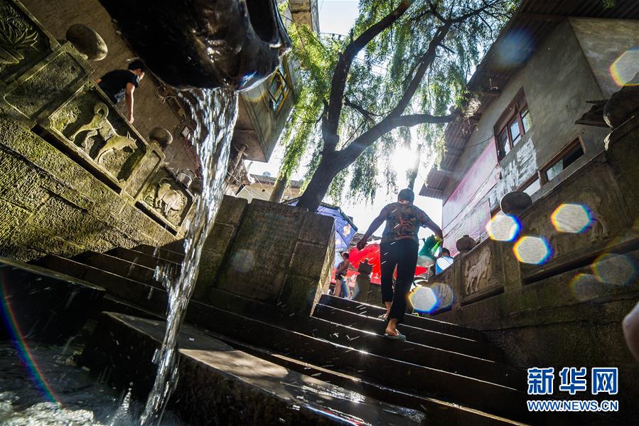这是7月13日在贵州省大方县拍摄的杨柳古井。贵州省毕节市大方县水资源丰富,遍布县城的几十口古井各具特色。夏日炎炎,往来的人们在古井前取水消暑,十分惬意。 新华社发(罗大富 摄)