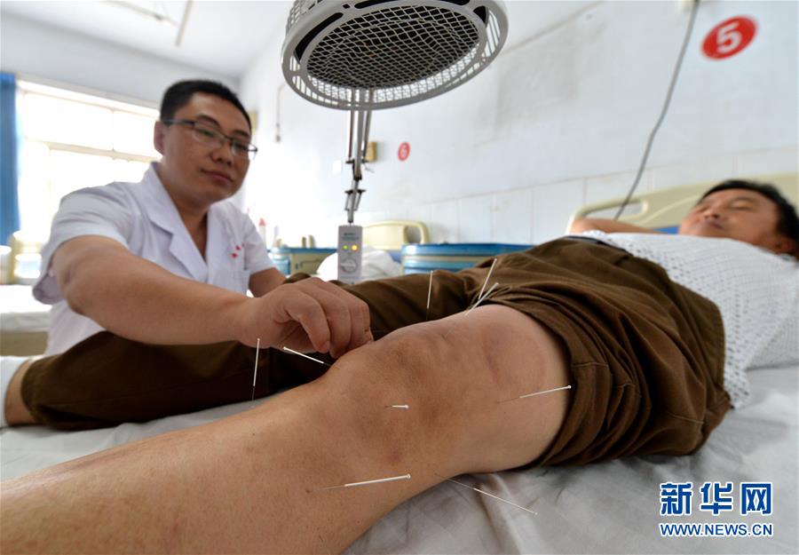 7月17日,市民在邯郸市峰峰矿区中心医院接受针灸治疗。 当日是入伏第一天,河北省邯郸市众多市民来到医院或诊所接受传统“冬病夏治”疗法。 新华社记者 王晓 摄