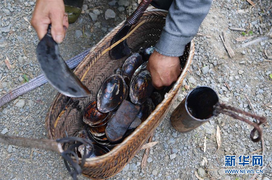 7月17日,庞朝远在整理漆篮、漆刀、漆筒、蚌壳等割漆工具。 新华社发(杨顺丕 摄)