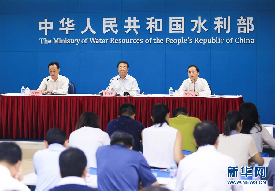 7月17日,在北京举行的全面建立河长制新闻发布会上,水利部部长鄂竟平(中)表示,截至2018年6月底,全国31个省(自治区、直辖市)已全面建立河长制,共明确省、市、县、乡四级河长30多万名,另有29个省份设立村级河长76万多名,打通了河长制“最后一公里”。