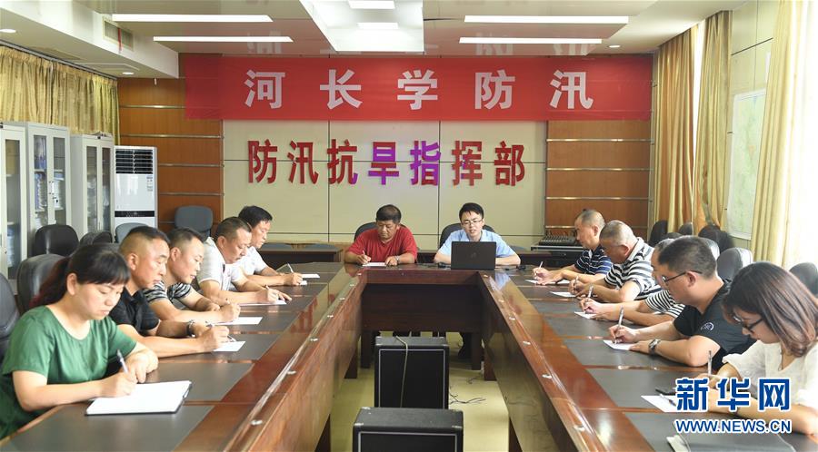安徽省明光市水利专家给河长上防汛课(2018年7月10日摄)。进入汛期,明光市水务部门开设“河长大讲堂”,邀请辖区多段河道的河长进行防汛工作业务培训。