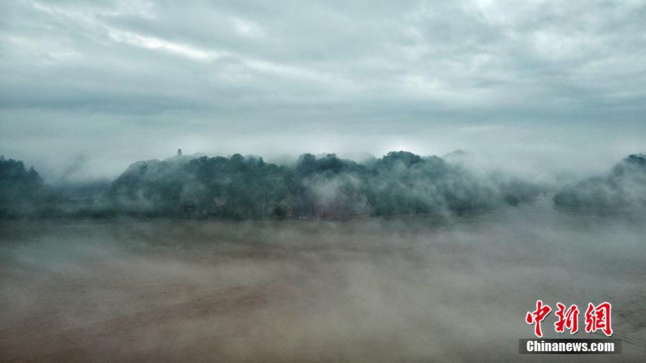 乐山大佛已被“雾海”笼罩。吴东 摄