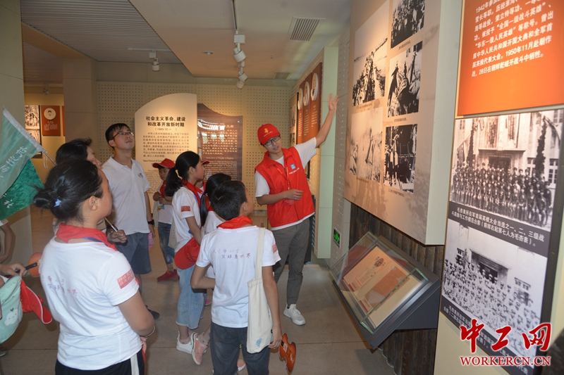中建三局杭州深蓝国际项目部,志愿者们开启了一场别样的爱国主义教育课堂,志愿者们与孩子们亲切交流,为他们发放了文学读物和建设者玩偶,一起用“中国很赞”手指舞表达心中对祖国的热爱,并鼓励他们好好学习、天天向上,争取以优异的成绩回报祖国与父母。孩子们则送上了他们充满童真的绘画作品,真诚的笑容伴随着灿烂的笑声,浓浓的爱国情怀以润物细无声的方式,流淌进了孩子们的心中。