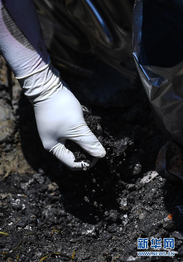 7月15日,在金东工业园常州市华舜印染有限公司厂区,第三方专业检测机构人员在现场对开挖后的污染土壤进行取样。