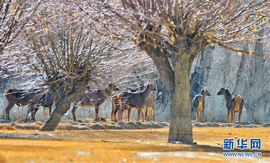 这是在西藏山南市泽当社区万亩人工林里拍摄的马鹿(2018年1月6日摄)。新华社记者 张汝锋 摄