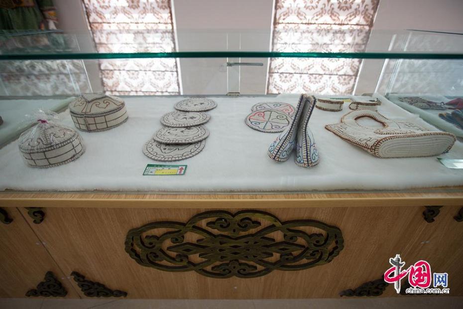 在社区内设有展示馆,里面陈列着具有民族特色的商品,也包括老人们手工制作的传统服饰和配件,既可以展示又可售卖。同时,社区还提供互联网平台,使手工制品的展示和销售更为便捷。 中国网记者 伦晓璇 摄 图片来源:中国网