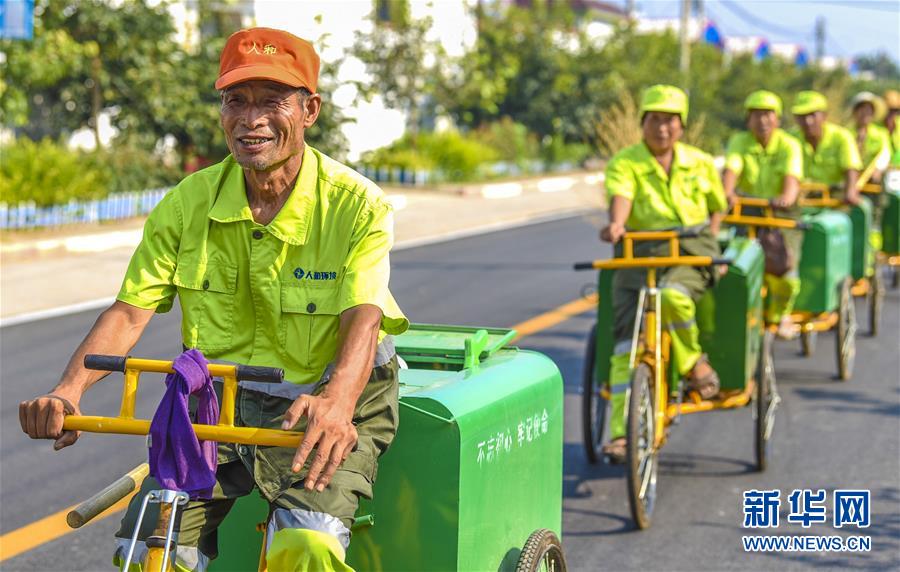7月21日,在深州市穆村乡庄火头村,乡村保洁队出发,准备开始街道清扫工作。 2018年以来,河北省深州市政府投资组建了乡村保洁队,建立起覆盖该市465个村的环卫治理体系,实现城乡环卫清扫、垃圾清运、统一处理常态一体化。 新华社记者 李晓果 摄