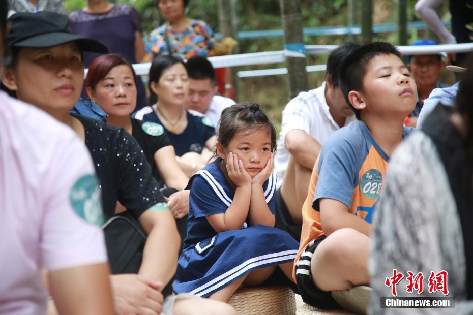 7月21日,小朋友跟着大人一起发呆。当日,浙江杭州举办发呆大赛,一百多位当地市民踊跃参赛,尽显“呆萌”状。 中新社发 刘佩琦 摄