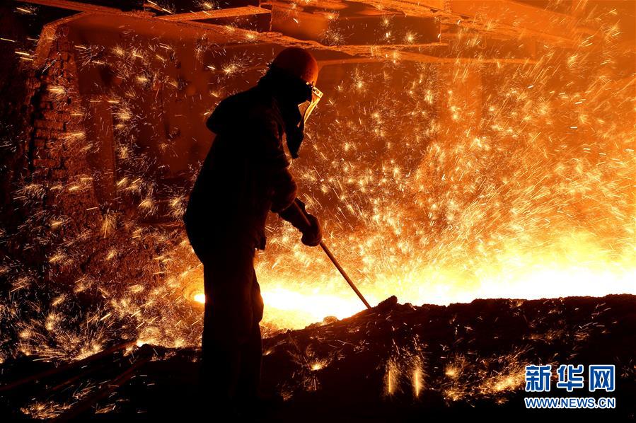 工人在河北冀南钢铁集团武安市裕华钢铁有限公司车间作业(7月1日摄)。 烈日炎炎,热浪袭人。高温之下,劳动者坚守在各自的工作岗位,用奉献和汗水诠释着奋斗的意义。 新华社记者王晓摄