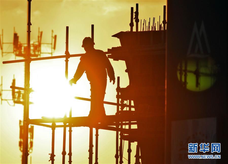 7月18日,江苏省淮安市一建筑工地的工人在施工现场作业。 烈日炎炎,热浪袭人。高温之下,劳动者坚守在各自的工作岗位,用奉献和汗水诠释着奋斗的意义。 新华社发(贺敬华 摄)
