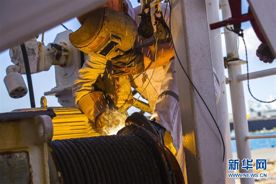 7月18日,浙江省舟山市定海工业区的工人在施工。 烈日炎炎,热浪袭人。高温之下,劳动者坚守在各自的工作岗位,用奉献和汗水诠释着奋斗的意义。 新华社发(姚峰 摄)