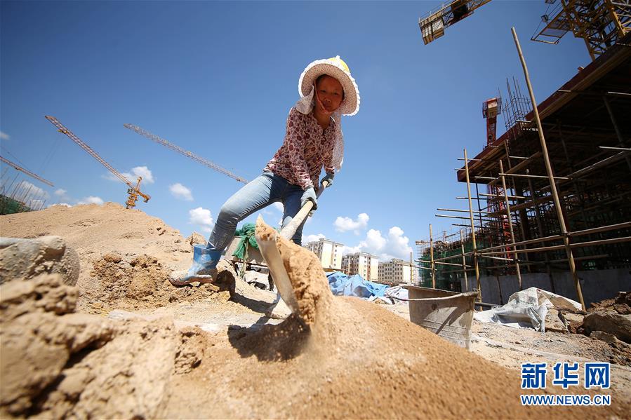 7月20日,在贵州省黔东南苗族侗族自治州丹寨县,一名建筑工人在施工。 烈日炎炎,热浪袭人。高温之下,劳动者坚守在各自的工作岗位,用奉献和汗水诠释着奋斗的意义。 新华社发(黄晓海 摄)