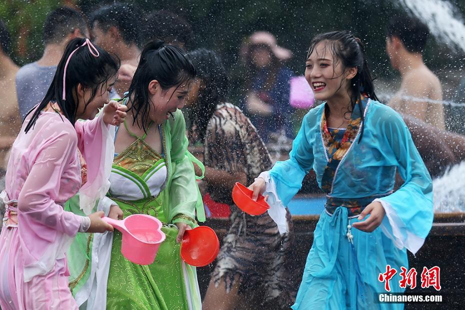 全身湿透丝毫不影响泼水的心情。 泱波 摄