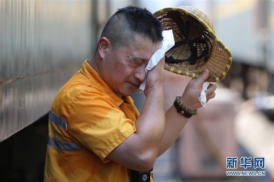 连日来,湖北襄阳遭遇高温天气,襄阳火车站上水吸污班的工人们坚守岗位,每天在站台下的股道往返,用汗水维护暑期旅客列车的清新洁净。