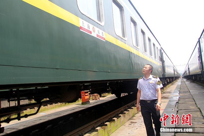 跟着列车入库后,袁光洪将在门窗紧闭的“桑拿车厢”守车18个小时。 陶静 摄