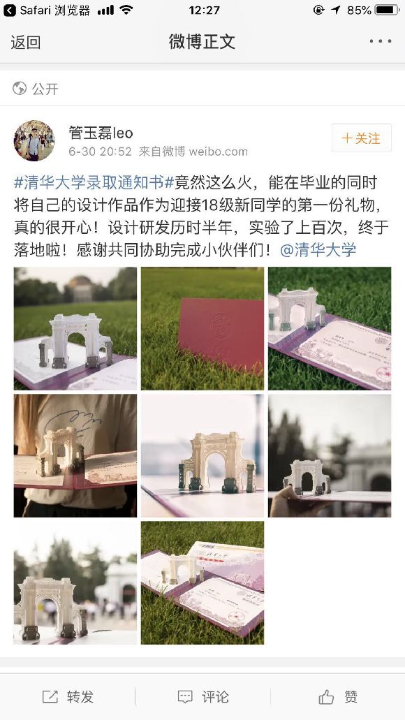 今年,清华大学的“二体校门”通知书一经曝光便“走红网络”。据悉,这份通知书是由清华美院师生共同设计完完成,灵感来自于立体书。