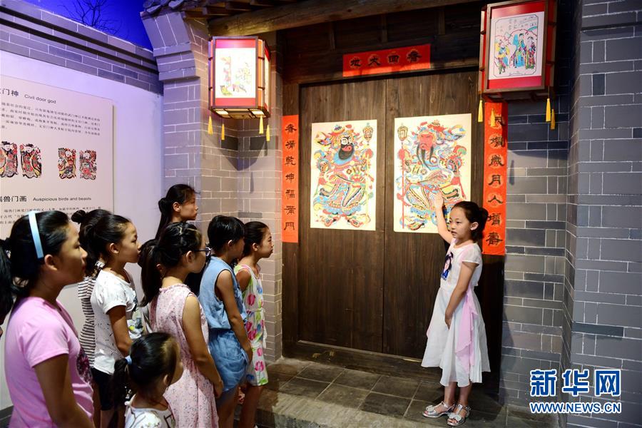 7月30日,小讲解员在武强年画博物馆介绍年画门神。