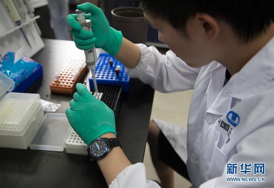 7月31日,一名科研人员在中华鲟研究所实验室里工作。