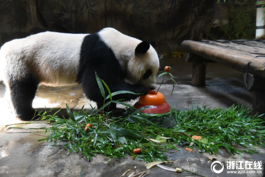 7月31日,杭州动物园的熊猫馆人气爆棚,因为这天是“大明星"——熊猫“成就"和“双好”四周岁的生日。上午9时许,工作人员和“猫粉”们已经在为它俩搭配蛋糕,一个散发着冰凉气息的“三层大蛋糕”!9时50分,工作人员抬着准备好的蛋糕进入熊猫馆,“猫粉”和游客们一起为它们送上了《生日快乐歌》。(拍友 连国庆 摄)