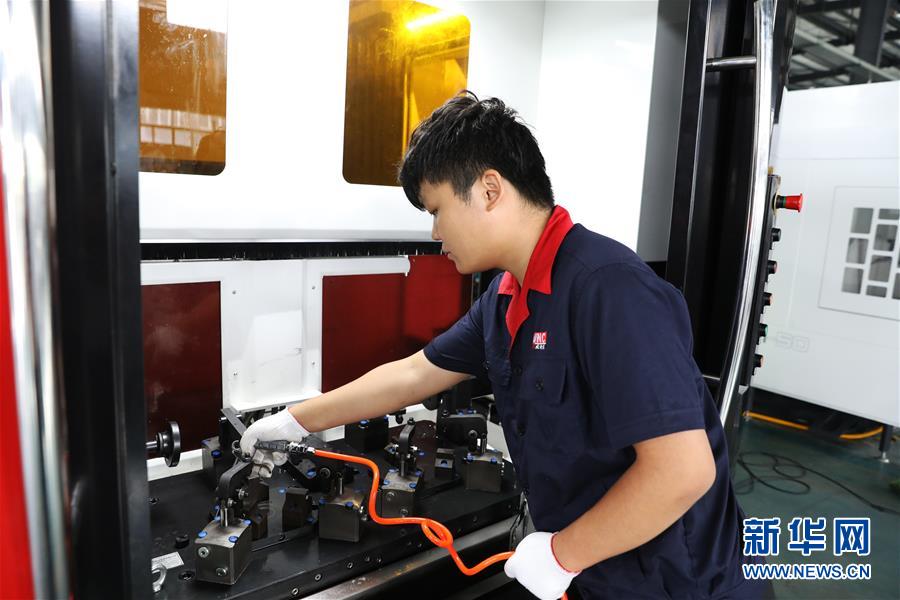 7月31日,位于重庆永川凤凰湖工业园的威诺克智能装备股份有限公司工作人员在对设备进行调试。 新华社记者 王全超 摄