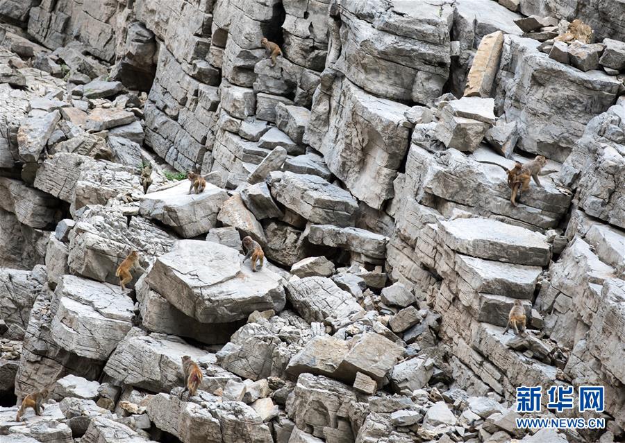 小三峡玩耍的猕猴(7月30日摄)。 长江支流大宁河小三峡绝壁高耸,环境优美,常有猕猴活动其间。据介绍,随着生态环境日趋优化,猴群迁徙活动范围扩大,这里的猕猴数量已超过3000只。 新华社记者 金立旺摄